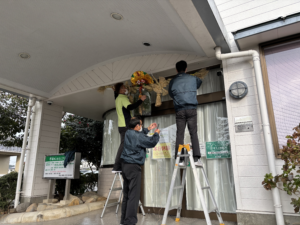 その分、取り付け作業はなかなか大変で、脚立に上がったり角度を調整したりと、職員4人がかりで思った以上に時間がかかりました。